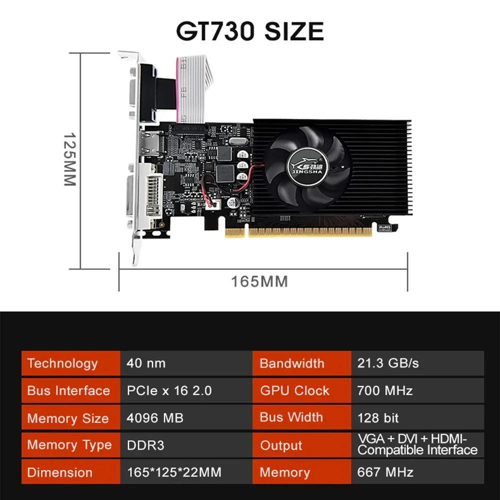 GT730 4GB Video Card 64Bit DDR3 With HDMI VGA DVI Port Nvidia Graphics Card PCIE X16 2.0 GT730 GPU Desktop Computer